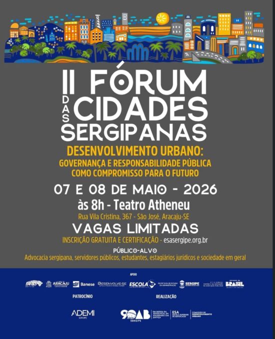 Nos dias 7 e 8 de maio, Aracaju será palco de um amplo debate sobre o futuro dos municípios com a realização do II Fórum das Cidades Sergipanas, no Teatro Atheneu, sempre a partir das 8h. O evento reunirá gestores públicos, empresários, especialistas e profissionais de diversas áreas para discutir soluções estratégicas voltadas ao crescimento sustentável das cidades sergipanas.