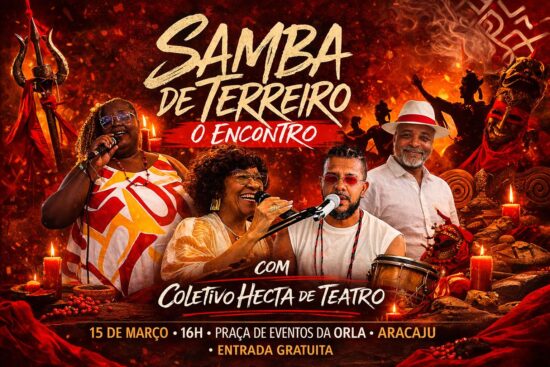 As celebrações pelos 171 anos de Aracaju também serão marcadas pela valorização da cultura afro-brasileira. No próximo domingo, 15 de março, às 16h, a Praça de Eventos da Orla recebe uma programação especial dedicada às tradições de matriz africana. A abertura será com o espetáculo “Samba de Terreiro – O Encontro”, um show que reúne grandes vozes do samba sergipano em uma apresentação que dialoga com a ancestralidade e a espiritualidade dos terreiros.
